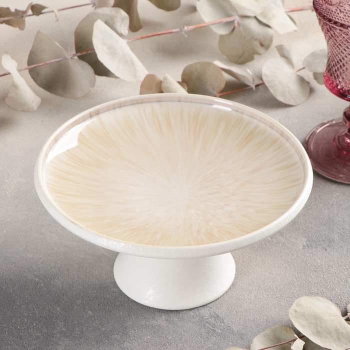 Блюдо керамическое для торта «Гравитация», 16,5×8,5 см, цвет бежевый