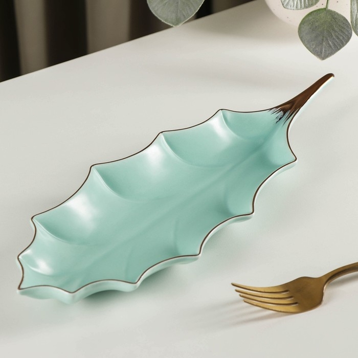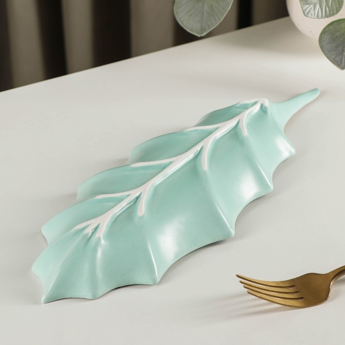 Блюдо керамическое сервировочное «Лист», 30×10 см, цвет голубой