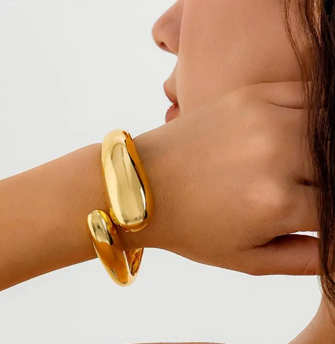 Браслет металл «Манжета» с выемками, цвет золото