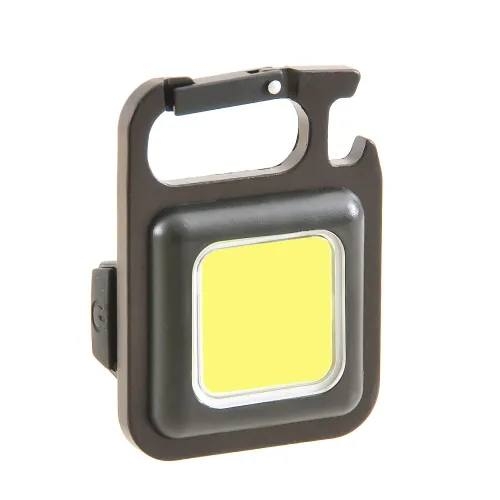 Светодиодный фонарь-брелок - универсальный мощный инструмент, который поместится в кармане или станет брелоком на ваших ключах. Благодаря технологии СОВ (Chip On Board) удалось добиться высокой яркости свечения при максимальной компактности - размер фонаря всего 60 х 46 х 21 мм. Четыре режима работы: 800lm, 500lm, 300lm, стробоскоп. Фонарь-брелок имеет возможность крепления на предметы экипировки при помощи карабина, оснащен мощным магнитом для фиксации на металлических поверхностях, имеет регулируемую опору для установки на горизонтальных поверхностях, а также оснащен резьбой М6 для установки на штативы. На корпусе также имеется открывалка для бутылок. Технические характеристики: Материал корпуса: алюминий + пластик; Тип аккумулятора: встроенный литий-ионный аккумулятор 500 mAh; Максимальный световой поток: 800 lm, белый теплый свет; Размер: 60*46*21 мм; Вес: 35 грамм; Влагозащита: IPX6; Время зарядки: около 1,5ч; Время работы: до 2ч. Комплектация: Фонарь -брелок 1 шт., кабель зарядки USB-Type C - 1 шт., упаковка - 1 шт.