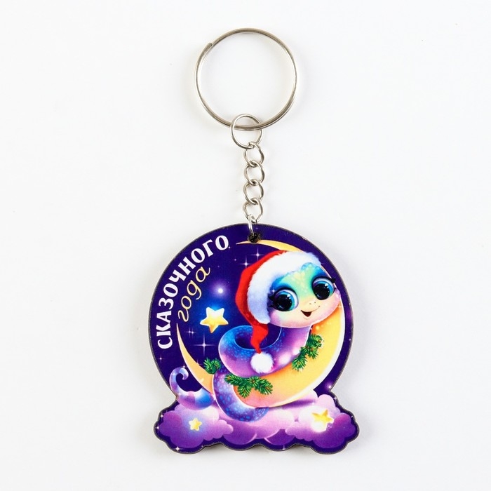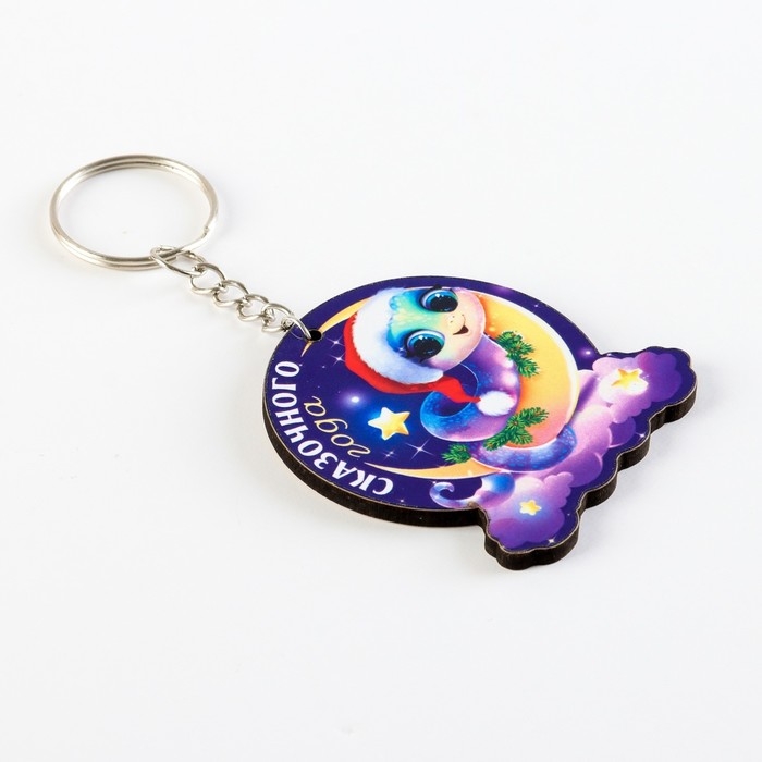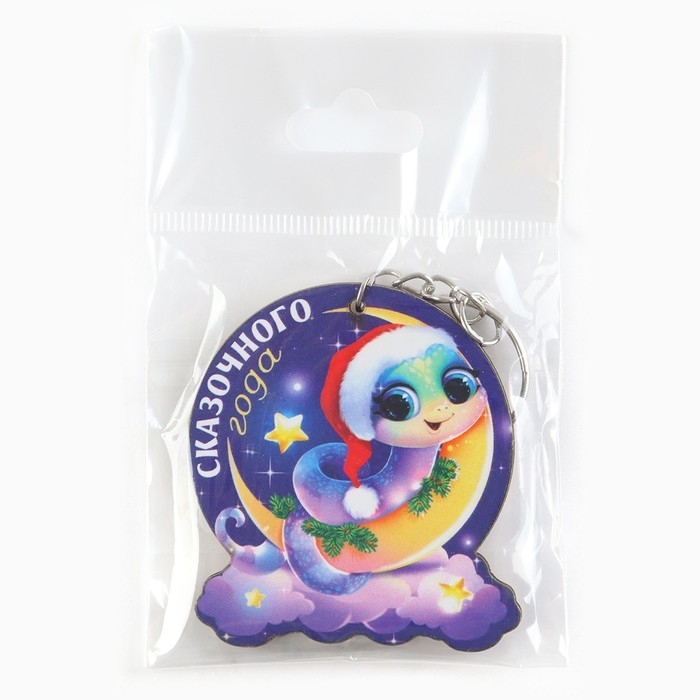 Брелок новогодний, для ключей, деревянный «Змейка на луне», 4,8 х 10.3 см