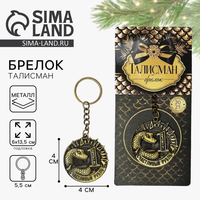 Брелок новогодний, для ключей «Счастливый рубль», диам. 4 см