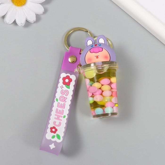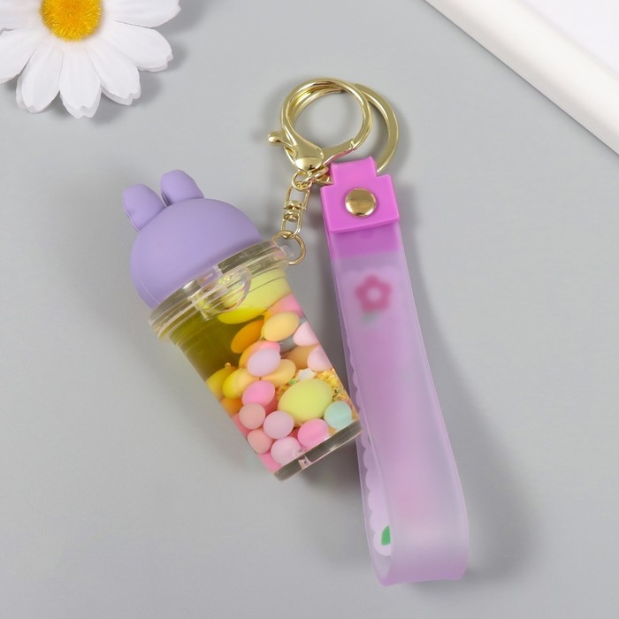 Брелок резина с карабином, ремешком "Стакан с крышкой зайкой" водный с декором 8х3,5х3,5 см 104989