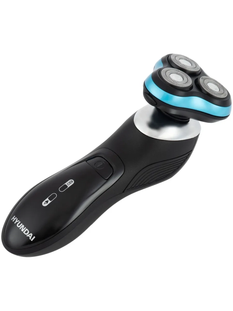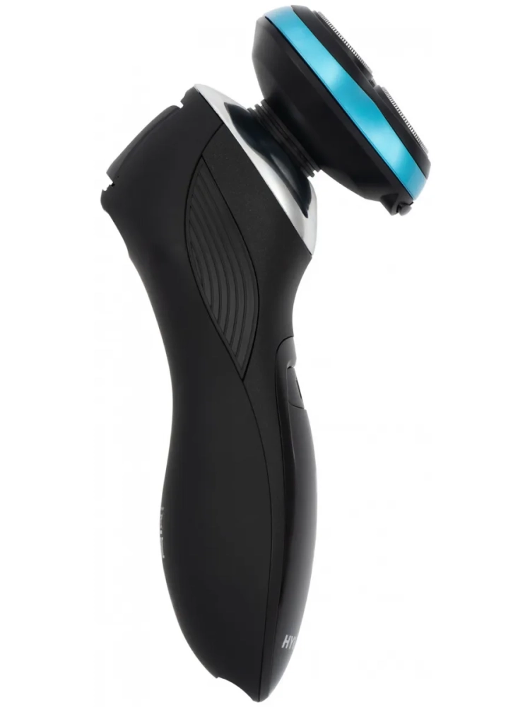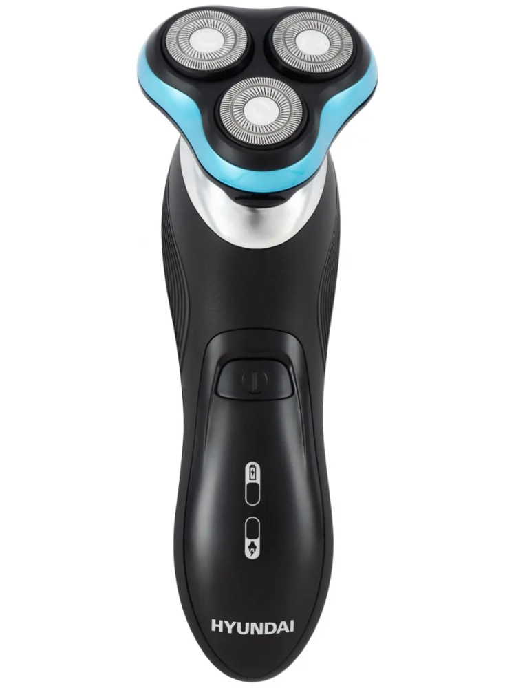 Бритва роторная Hyundai H-SH8085 черный, бритвенных головок: 3шт, питание от аккумулятора, встроенный триммер, зарядное устройство, защитная каппа(колпачек), щеточка для чистки