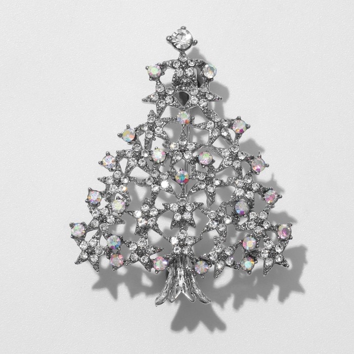 Брошь «Ёлка сияющая», цвет белый в серебре