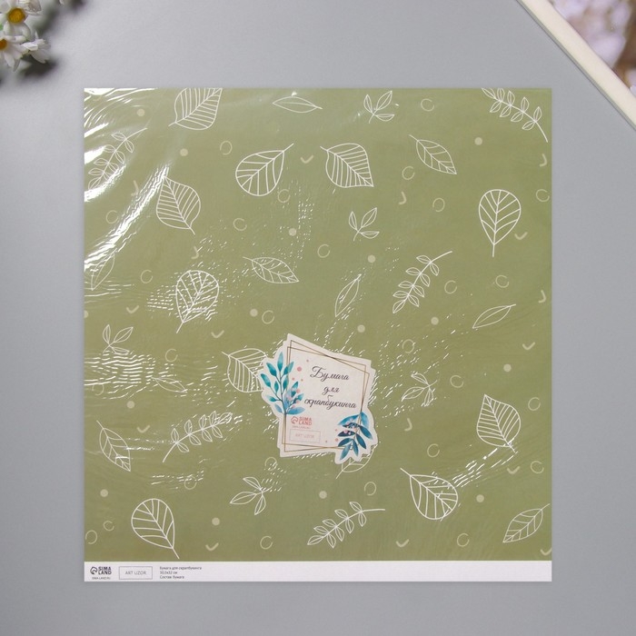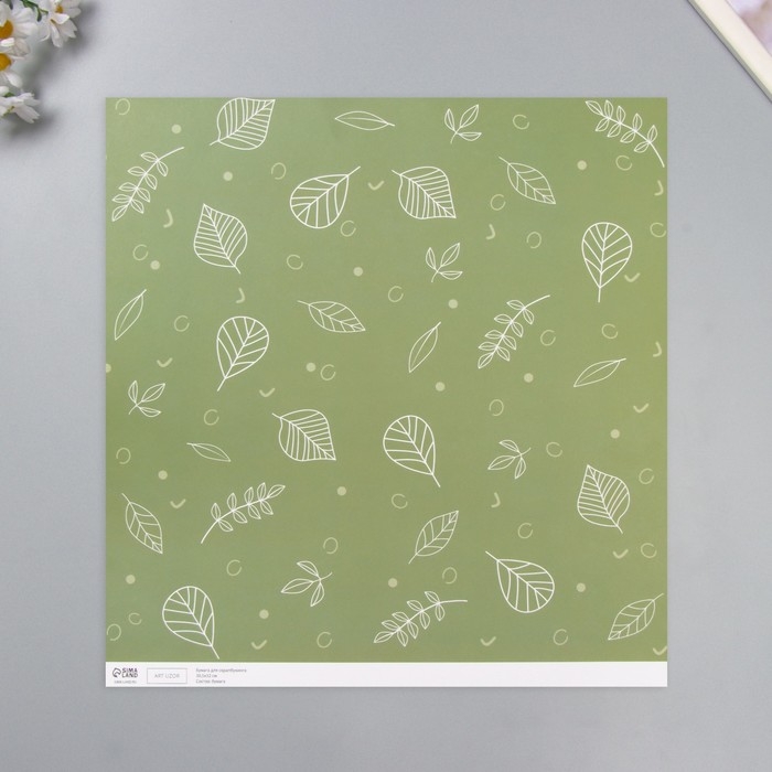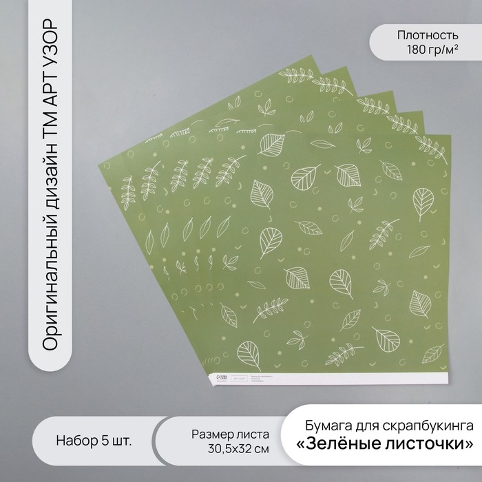 Бумага для скрапбукинга "Зелёные листочки" плотность 180 гр набор 5 шт 30,5х32 см