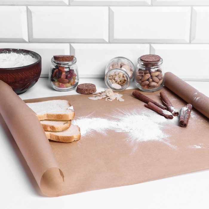 Пергамент силиконизированный Доляна, 38 см х 50 м, коричневый, жиростойкий