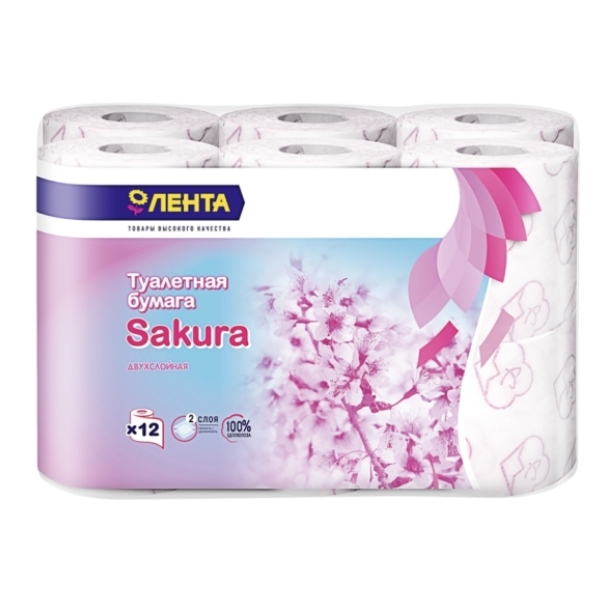 Бумага туалетная ЛЕНТА 2 слоя с ароматом сакуры, белая с розовым тиснением, 12шт Слойность 2 слоя Количество штук в упаковке 12 Меры предосторожности При повышенной чувствительности и повреждениях кожи избегать длительного контакта. Условия хранения В сухом месте. Тон № / Цвет Белый. Бумага туалетная ЛЕНТА двухслойная с тонким ароматом сакуры экономит бюджет и остается комфортной и приятной в использовании. Она создана из качественной целлюлозы, деликатно очищает и заботится о вашей коже каждый день. Состав: 100% целлюлоза.