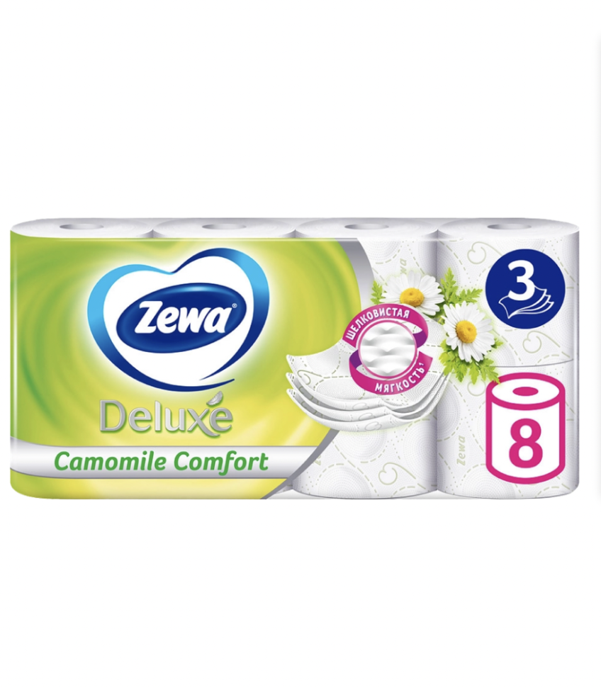 Бумага туалетная ZEWA Deluxe Ромашка 3-слоя, 8шт