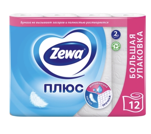 Бумага туалетная ZEWA Плюс 2-слоя белая, 12шт