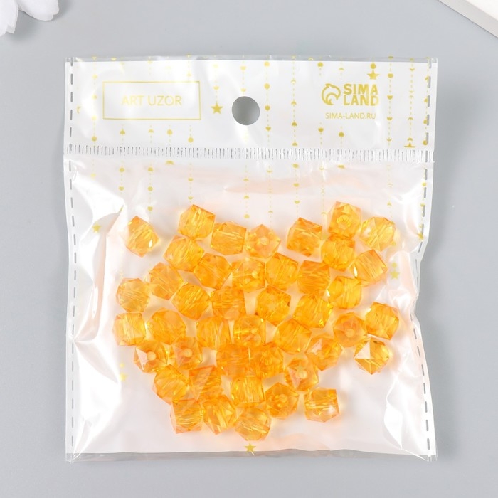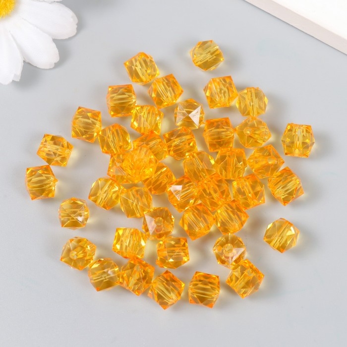 Бусины пластик "Кристалл многогранник. Янтарный" прозрачный набор 20 гр 1х1х1 см