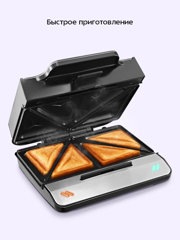 Конструкция бутербродницы предусматривает приготовление бутербродов с закрытой крышкой. При таком приготовлении продукты находятся между двух нагреваемых панелей и готовятся с двух сторон. Приготовление блюд с закрытой крышкой позволяет им быстрее готовиться и не требует от вас переворачивать еду в процессе приготовления.