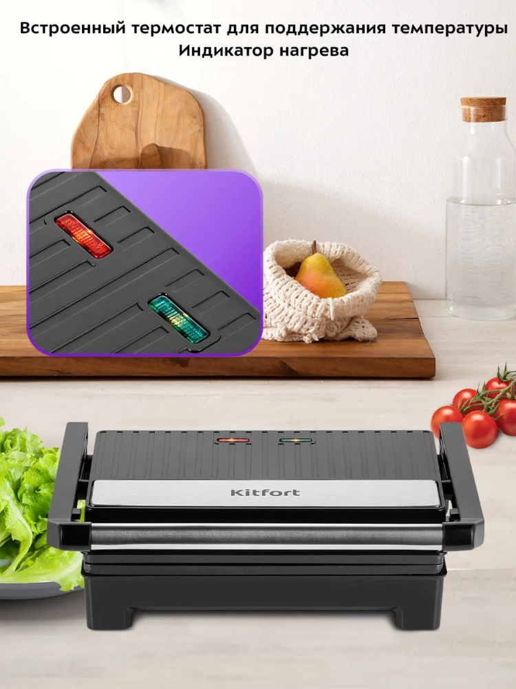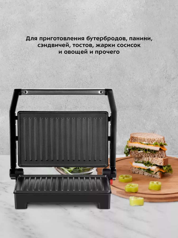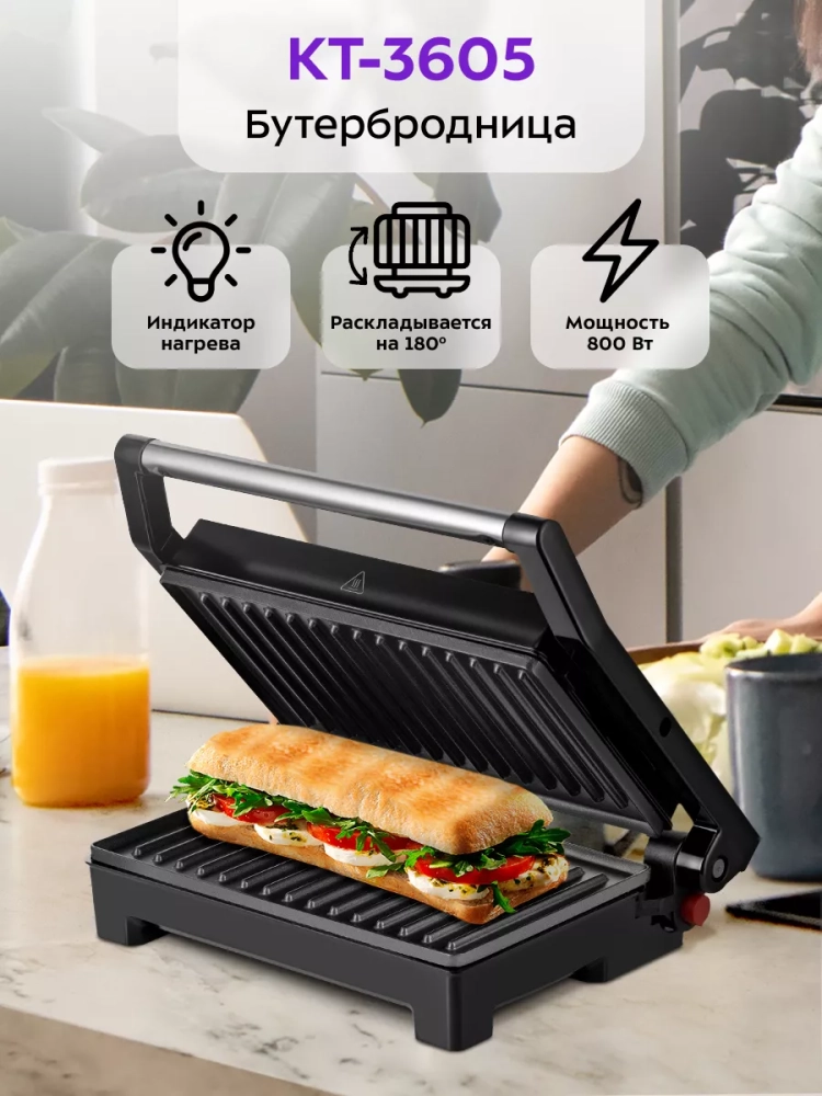 Бутербродница Kitfort КТ-3605 предназначена для приготовления бутербродов, панини, сэндвичей, тостов, жарки сосисок и овощей.