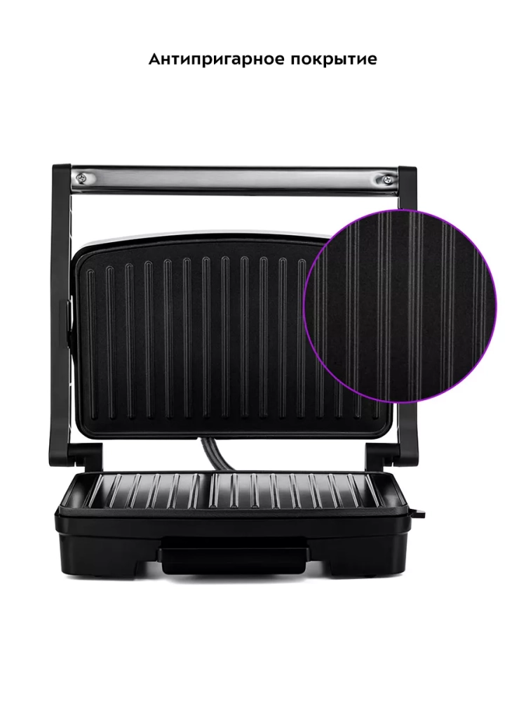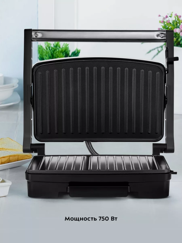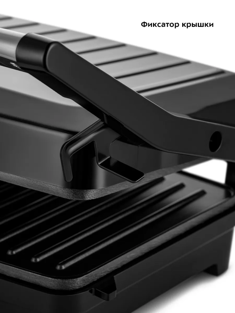 Эта электрическая бутербродница оснащена термостатом для поддержания оптимальной температуры и индикаторами работы и нагрева, что обеспечивает удобство и безопасность использования. Прорезиненные ножки предотвращают скольжение прибора по поверхности стола, а специальный фиксатор удерживает крышку в закрытом состоянии, что упрощает хранение и транспортировку.