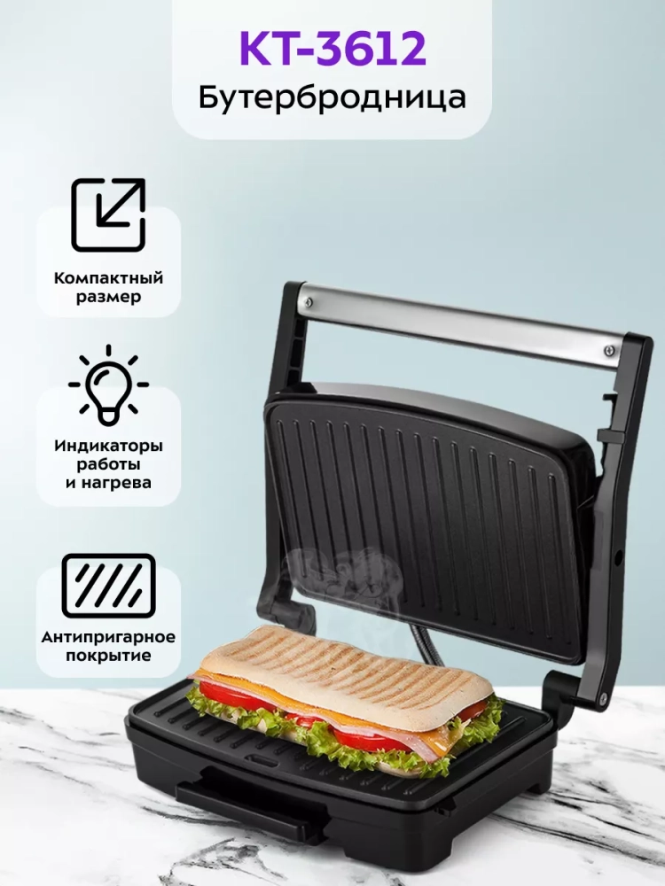 Бутербродница электрическая сендвичница КТ-3612 - 750 Вт