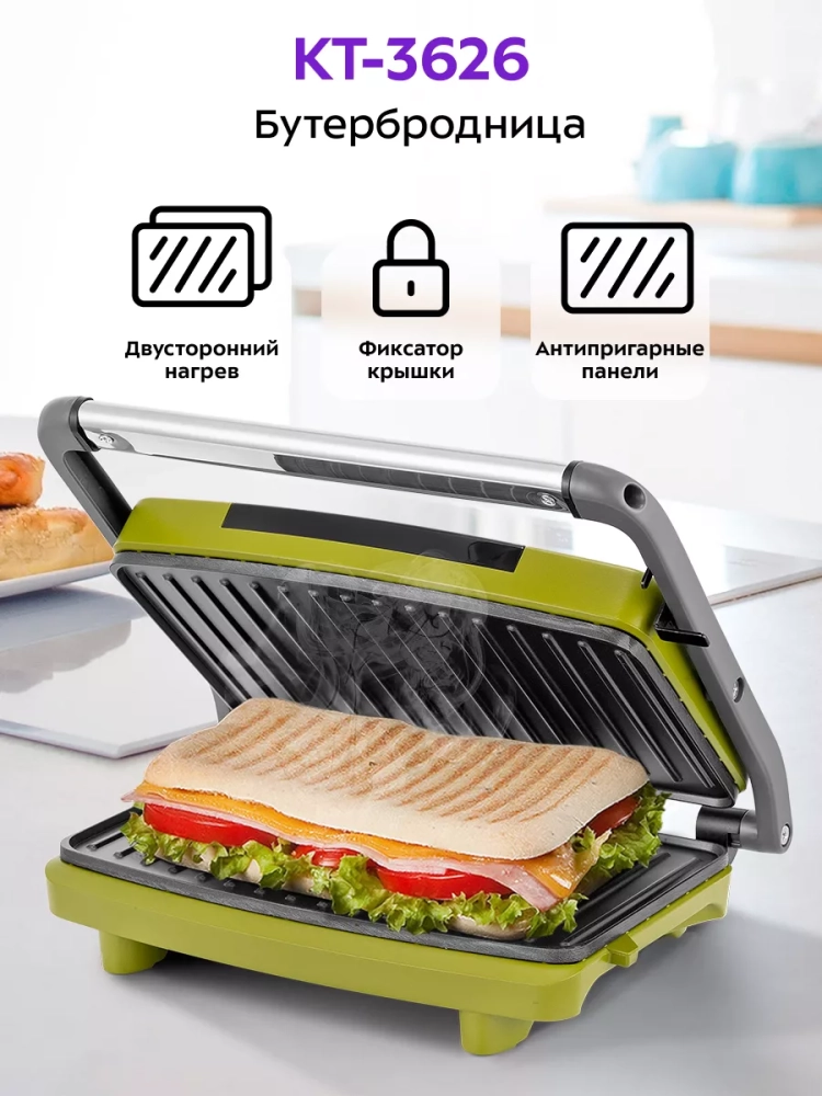 Бутербродница электрическая сендвичница КТ-3626 - 750 Вт