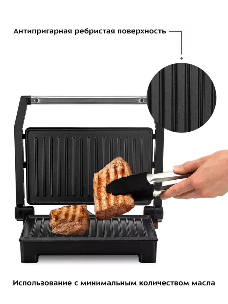 На панели нанесено антипригарное покрытие, что позволяет готовить с минимальным количеством масла или без него. Такое покрытие также облегчает процесс чистки панелей.