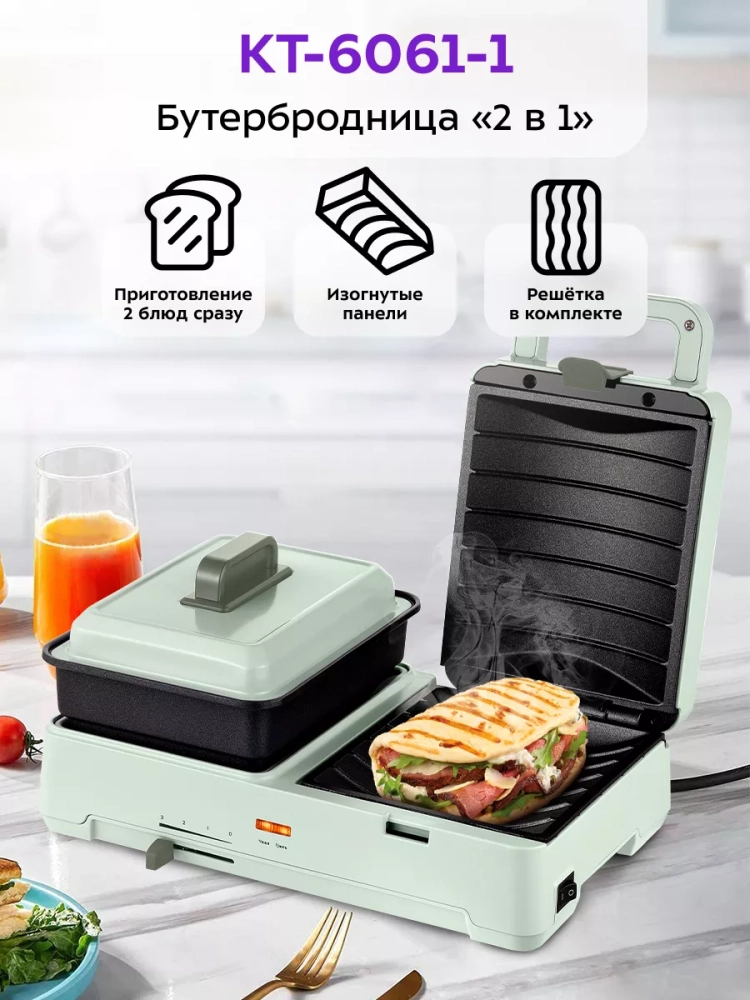 Бутербродница электрическая сендвичница КТ-6061 (2 в 1)