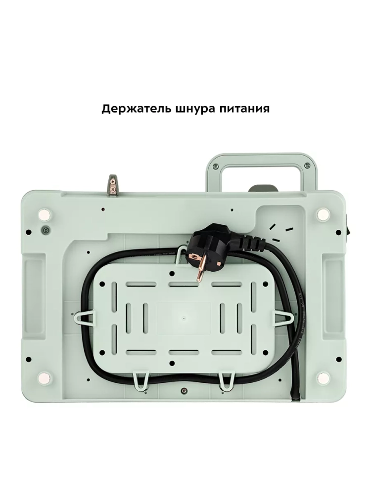 Управление конфоркой осуществляется регулятором нагрева, а чтобы воспользоваться бутербродницей, необходимо включить переключатель питания сбоку. Прибор оснащен индикатором работы, который расположен на корпусе. На дне прибора есть держатель шнура питания, что обеспечивает удобное хранение устройства.