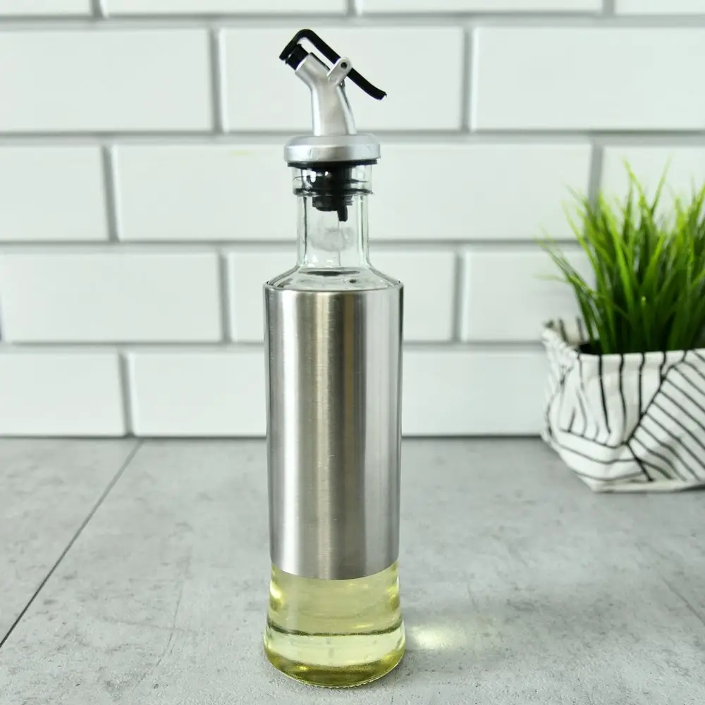 Бутылка со специальным носиком-дозатором для масла, соусов, уксуса, сиропов позволяет наливать масло ровной тонкой струйкой без разбрызгивания. Благодаря дозатору удобно контролировать расход масла. Клапан плотно прилегает к основанию горлышка, за счет чего обеспечивается полная герметичность. Стеклянная бутылка обеспечивает хорошую сохранность содержимого и не меняет его вкус.