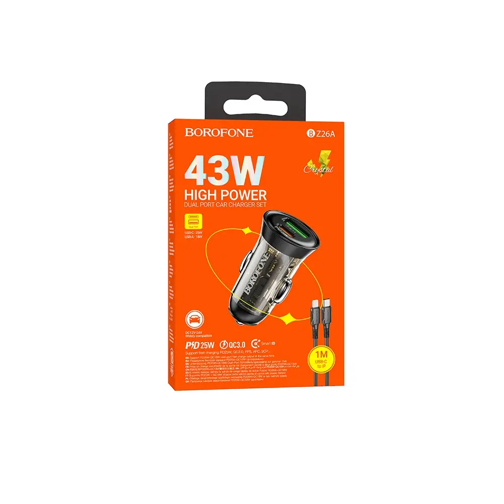 Быстрая автомобильная зарядка провод Lightning 1 м