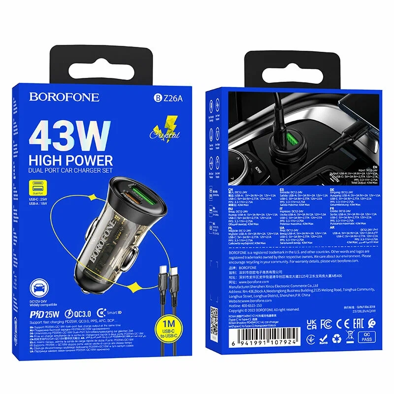 Представляем вашему вниманию автомобильное зарядное устройство Borofone BZ26A, идеальное решение для быстрой подзарядки вашего телефона в дороге. Это устройство позволяет удобно и быстро заряжать смартфоны и планшеты через прикуриватель автомобиля, обеспечивая надежное питание для ваших гаджетов 43W.