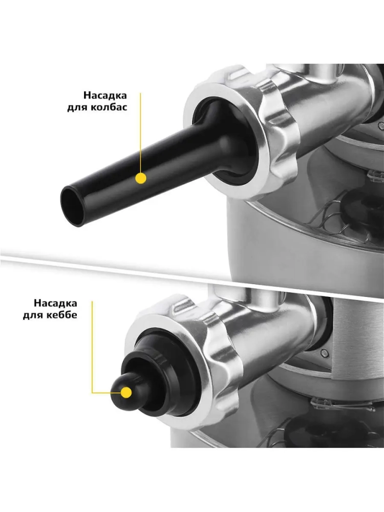 Ультрасовременный и мощный миксер−мясорубка Kitfort КТ−1350 поможет вам смешать ингредиенты, взбить яйца или сливки, приготовить картофельное пюре, соус, крем, мусс, замесить жидкое тесто для блинов и тугое тесто для пельменей и пирогов, а также перекрутить мясо, сделать колбасу и полые колбаски «кеббе», а также продавить через разные геометрические формы тесто для печенья или макарон.