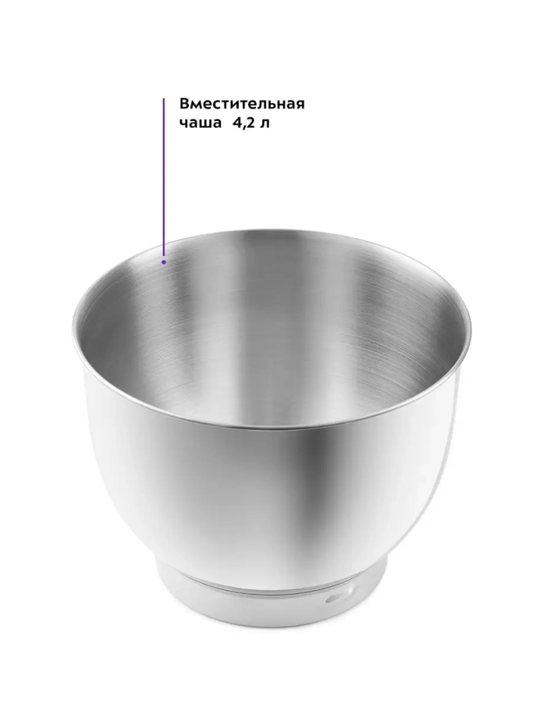 Миксер оснащен большой чашей емкостью 4,2 литра.