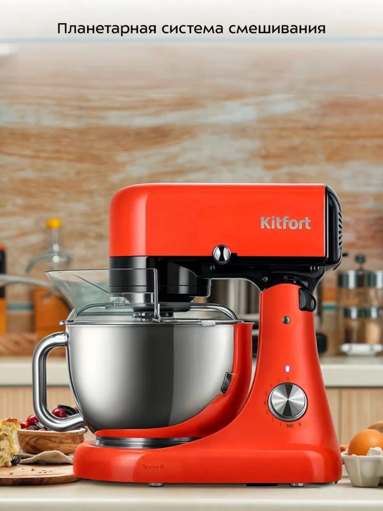 Планетарный миксер Kitfort КТ-3488 поможет вам смешать ингредиенты, взбить яичный белок или сливки, приготовить картофельное пюре, соус, крем, мусс, замесить жидкое тесто для блинов и крутое — для пельменей и пирогов. В комплекте есть три насадки.