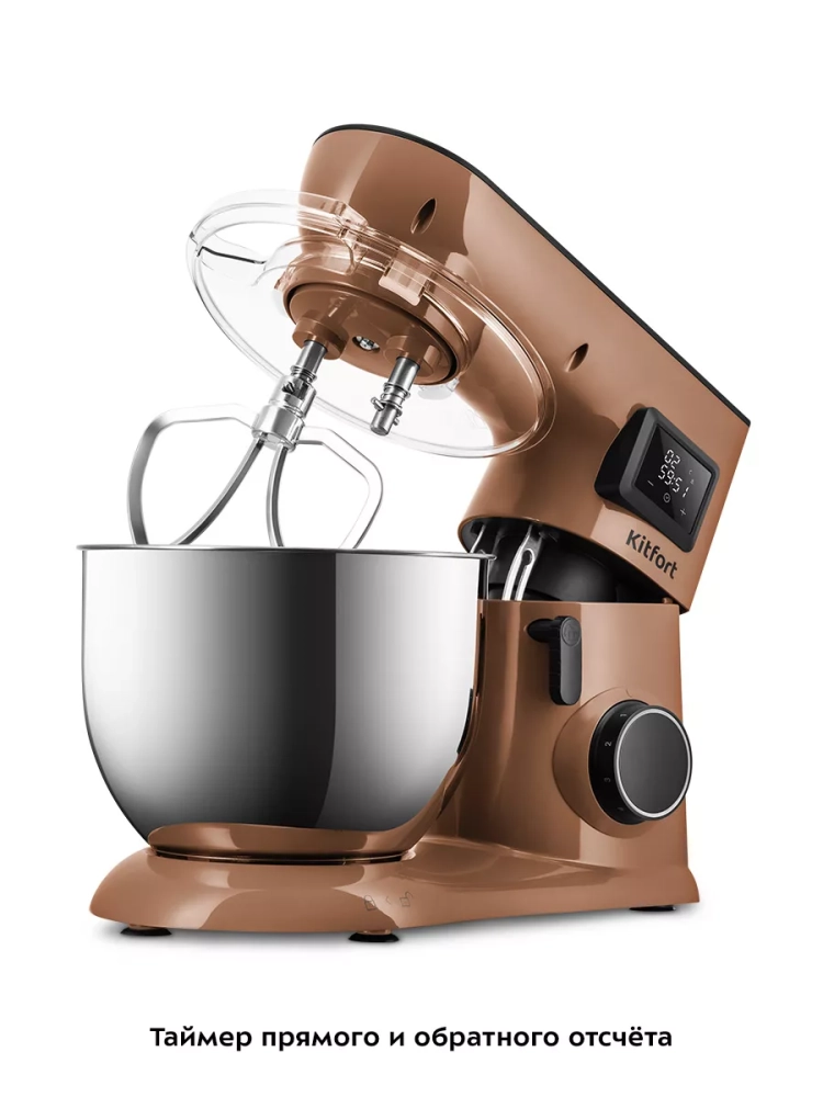 Миксер оснащен таймерами прямого и обратного отсчета. По таймеру прямого отсчета вы можете засечь время, которое требуется для взбивания, смешивания или замешивания ингредиентов, а в следующий раз сразу выставить это время на таймере обратного отсчета.