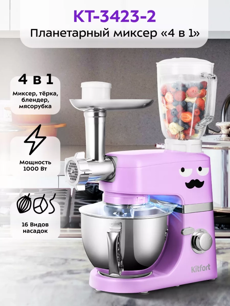 Электрический планетарный миксер с чашей — это не просто техника, это инвестиция в вашу кухню. Он станет незаменимым помощником в приготовлении разнообразных блюд, от простых до самых сложных. Этот кухонный прибор от Kitfort — это сочетание стиля, мощности и надежности, которое оценят все, кто любит готовить дома.