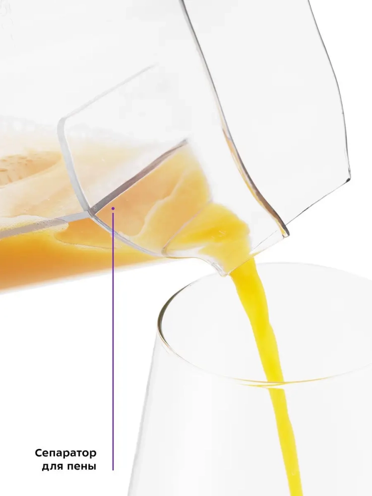 В контейнере для сока предусмотрен съемный декантер для отделения пены от сока.