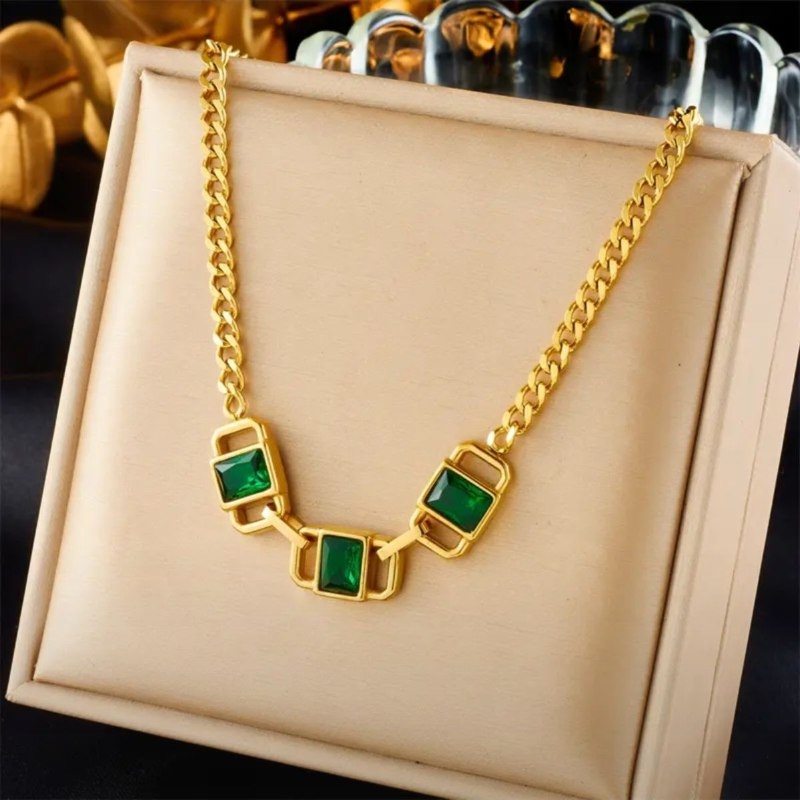 Цепочка для женщин из нержавеющей стали, зеленый циркон