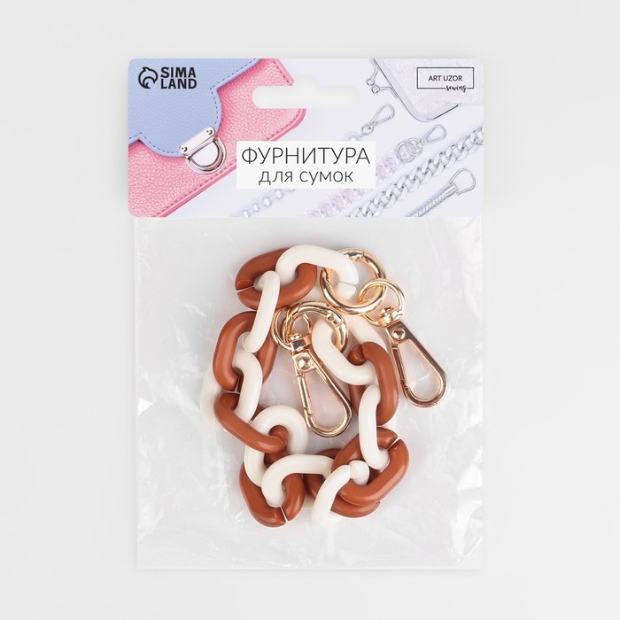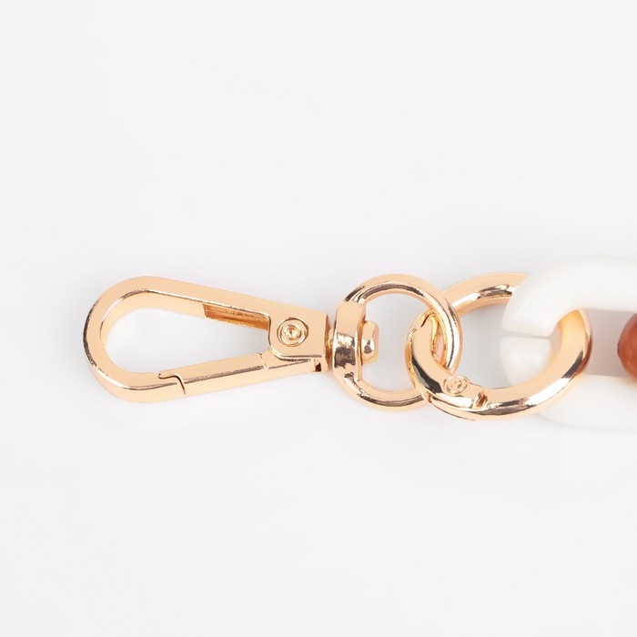 Цепочка для сумки, пластиковая, с карабинами, 24 × 18 мм, 30 см, цвет коричневый/белый/золотой