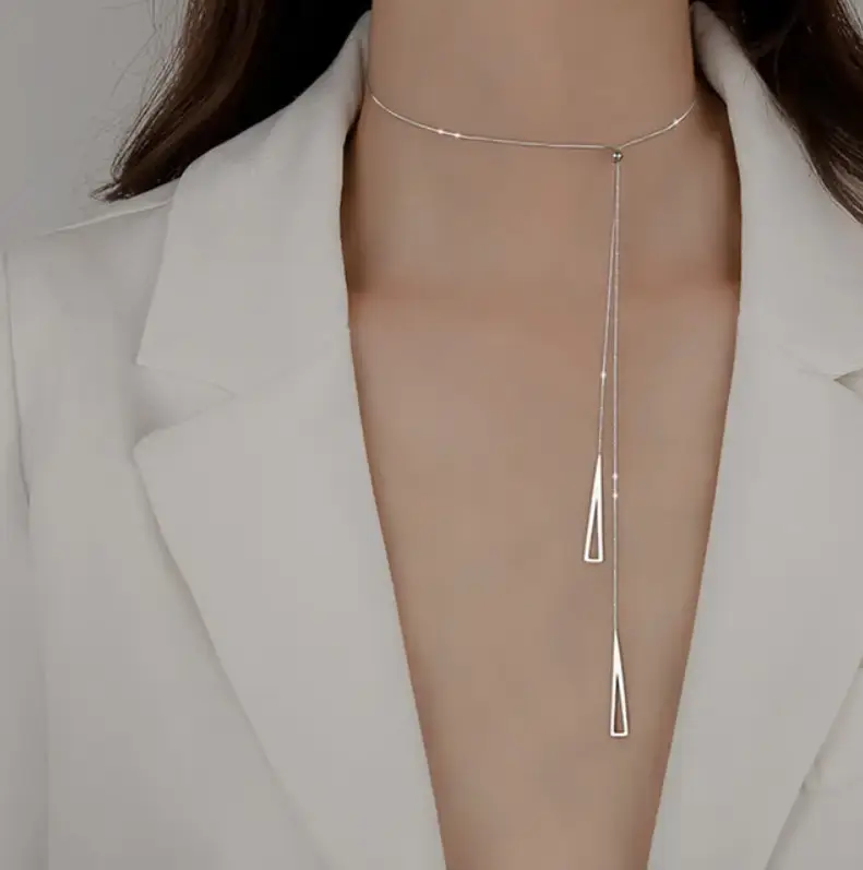Цепочка женская с двумя подвесками в виде треугольников серебристая