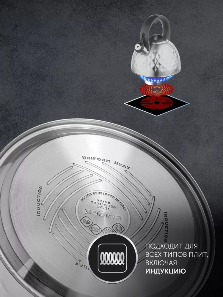 Термоаккумулирующее капсулированное двойное дно обладает технологией UNIFORM HEAT, которая обеспечивает равномерный нагрев, быстрое закипание и долгое сохранение температуры.