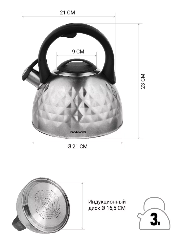 Чайник 3л со свистком Kontur 3L.индукция