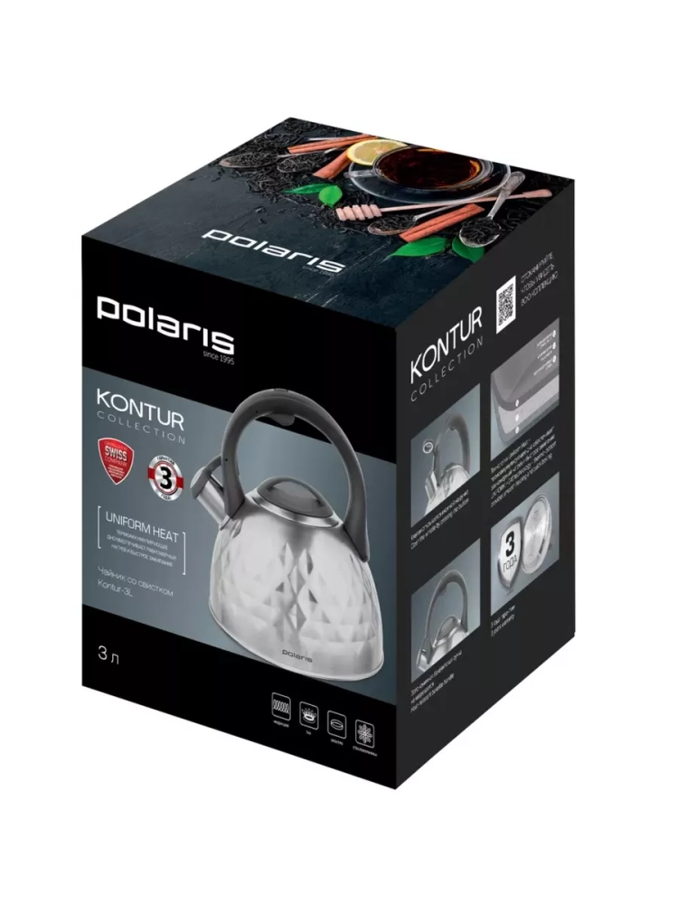 Чайник со свистком Polaris Kontur 3L - это идеальное сочетание стильного дизайна и высокой функциональности. Изящные линии и современный внешний вид делают его не только необходимым элементом на кухне, но и прекрасным аксессуаром для создания уюта и комфорта в доме.