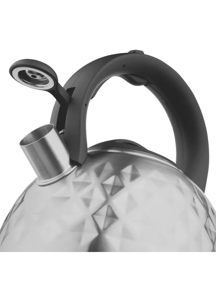 Эргономичная бакелитовая ручка с покрытием Soft-touch не нагревается и не скользит, в отличие от ручек из пластика, что гарантирует безопасность во время использования. Съемная крышка обеспечивает легкость наполнения чайника водой и удобный доступ для мытья посуды. Клапан на носике легко открывается с помощью кнопки на ручке. Большой обьем посуды (3 литра) позволяет приготовить горячие напитки для всей семьи и гостей.