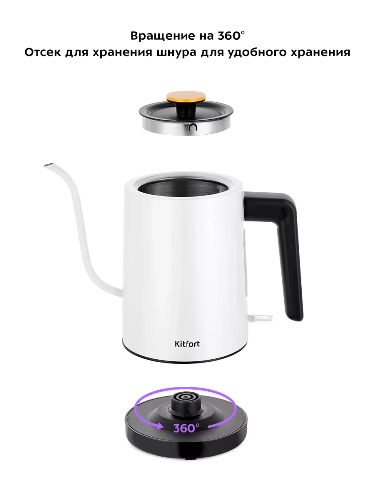Электрический чайник Kitfort КТ-6642 предназначен для кипячения воды и приготовления кофе способами кемекс и пуровер.