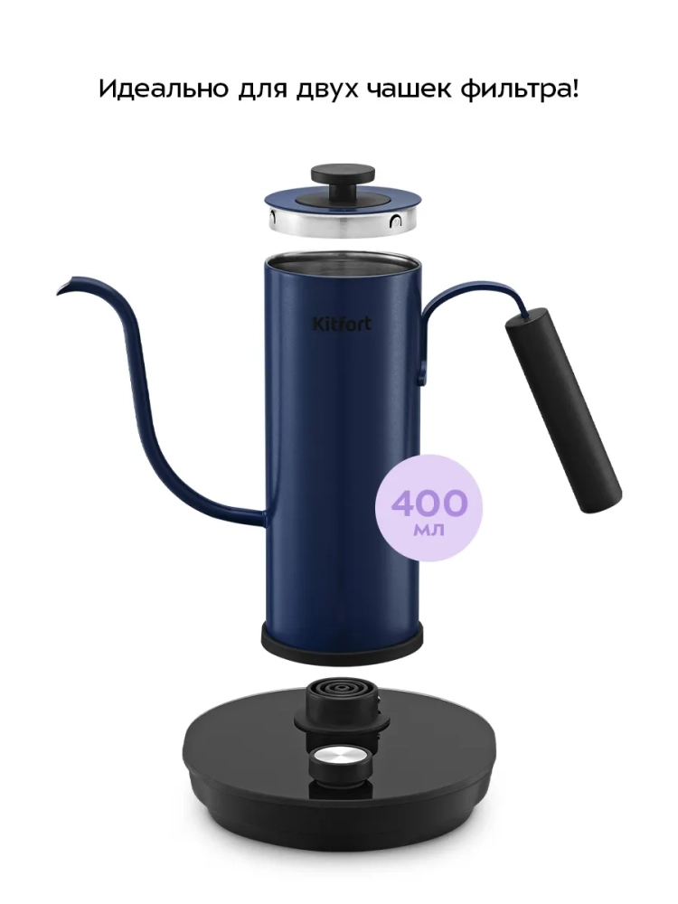 Чайник для варки кофе Kitfort КТ-6758 предназначен для кипячения и нагрева воды, а также для приготовления кофе способами кемекс и пуровер. Прибор может нагреть воду до температуры от 60 °С до 100 °С и поддерживать ее в течение 1 часа. Температура воды контролируется встроенным в дно чайника термодатчиком.