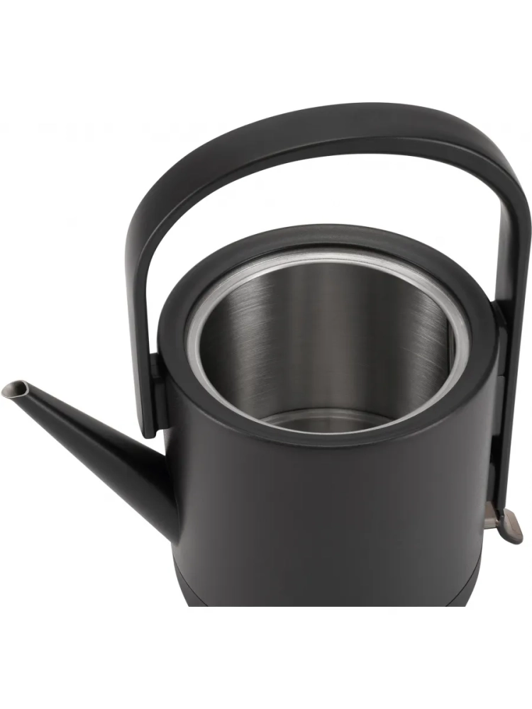 Матовый черный корпус сдержан и универсален, легко вписывается в современный интерьер и подчеркивает индивидуальность владельца. Поверхность не собирает отпечатки пальцев и легко очищается. Эргономичная ручка удобно ложится в руку, а съемная крышка обеспечивает быстрый доступ для наполнения и упрощает очистку внутренней части чайника. Заостренный тонкий носик позволяет наливать воду тонкой, ровной струей без разбрызгивания.