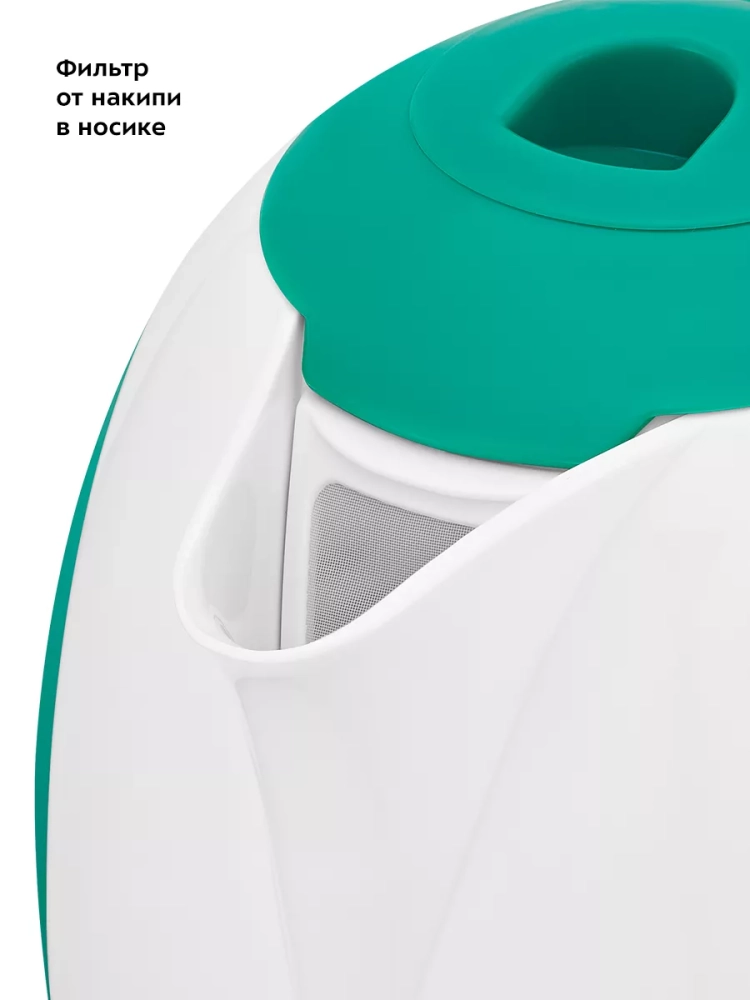 Чайник автоматически отключается при закипании, имеет защиту от перегрева и от включения без воды. В носике чайника расположен фильтр от накипи.