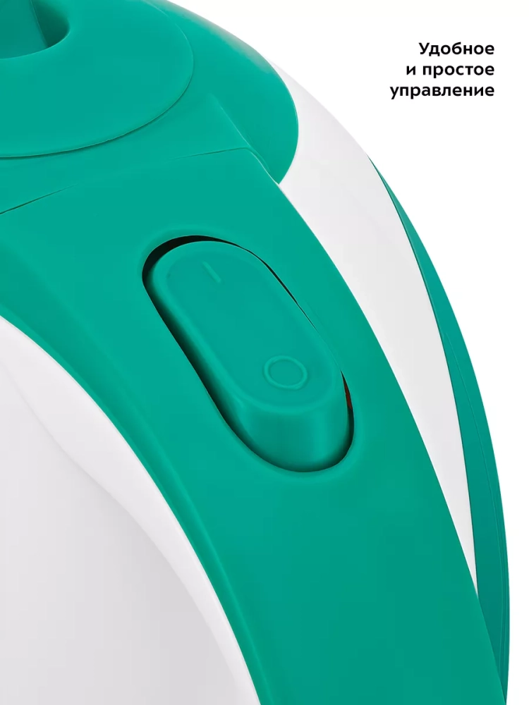 Корпус чайника, крышка и подставка выполнены из пластика. Мерная шкала находится на прозрачной части колбы. Ручка чайника не нагревается и удобно лежит в руке.