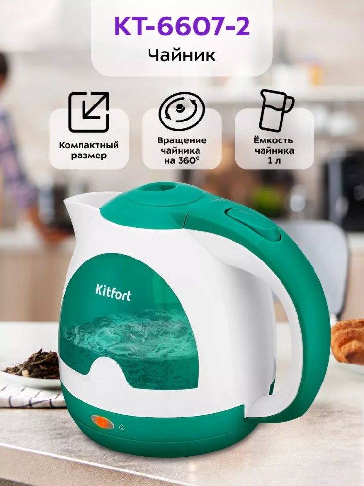 Электрический чайник Kitfort КТ-6607 предназначен для кипячения воды дома, в офисе, на даче. Мощность чайника позволяет использовать его в домах со слабой проводкой.