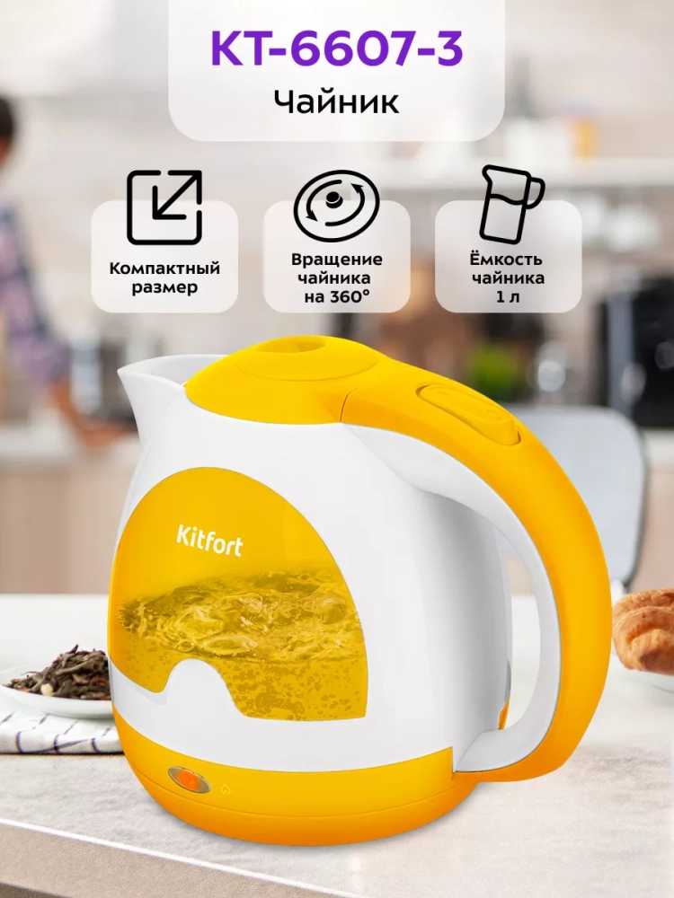 Электрический чайник Kitfort КТ-6607 предназначен для кипячения воды дома, в офисе, на даче. Мощность чайника позволяет использовать его в домах со слабой проводкой.