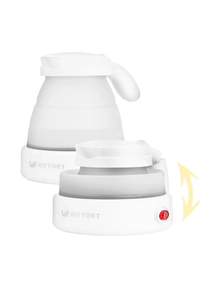 Складной дорожный чайник Kitfort КТ-667 станет незаменимым помощником в путешествиях, деловых поездках и в любых других сложных бытовых условиях. Его корпус эластичный и складывается, так что его можно компактно уложить в багажный чемодан или сумку и везде возить с собой. Корпус чайника выполнен из силикона, крышка и нижняя часть корпуса выполнены из пластика. Мерная шкала находится на боковой поверхности чайника. Ручка чайника пластиковая, не нагревается и удобно лежит в руке, для удобства хранения и перевозки ручку можно сложить. Нагревательный элемент (ТЭН) у этой модели чайника скрытый и находится в донной части. Сверху он закрыт специальной металлической пластиной из нержавеющей стали, благодаря которой исключается прямой контакт ТЭНа с водой. Такая конструкция препятствует образованию накипи, облегчает уход и значительно снижает шум при нагревании воды. Чайник автоматически отключается при закипании, имеет защиту от перегрева и от включения без воды. Контроль температуры и отключение чайника при закипании происходит благодаря термостату который размыкает цепь нагревателя при температуре кипения воды на уровне мирового океана – 100 *С. Термостат отслеживает точную температуру воды в чайнике и размыкает цепь питания ТЭНа при превышении данной температуры. В случае пониженного атмосферного давления, например в горах, чайник не будет отключаться при закипании, поскольку температура отключения (размыкания термостата) не будет достигаться. Также при повышенном давлении, например глубоко под землей, чайник может отключаться раньше чем вода закипит. Это не является неисправностью.
