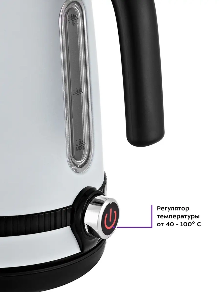 Электрический чайник Kitfort КТ-6121 предназначен для нагрева и кипячения воды. Чайник оснащен терморегулятором и может не только вскипятить воду, но и нагреть ее до температуры от 40 до 100 °С, что очень удобно при заваривании различных сортов чая, приготовлении кофе и детского питания. Чайник также оснащен функцией поддержания температуры. Температура воды контролируется термодатчиком, встроенным в дно чайника.