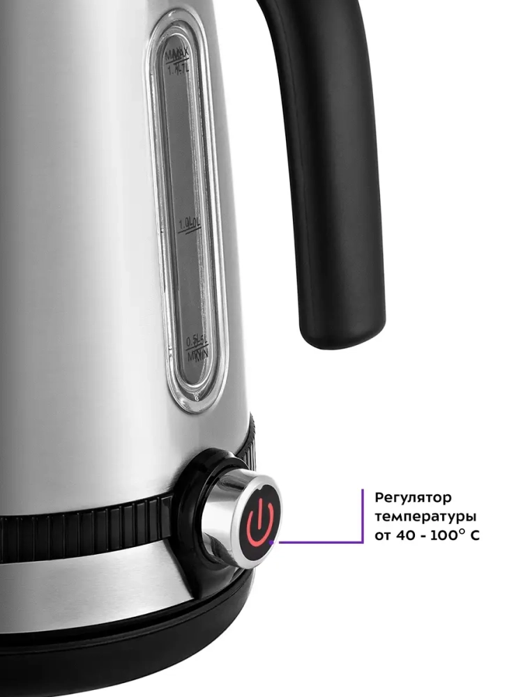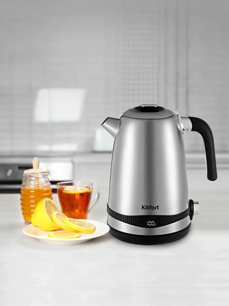 Электрический чайник Kitfort КТ-6121 предназначен для нагрева и кипячения воды. Чайник оснащен терморегулятором и может не только вскипятить воду, но и нагреть ее до температуры от 40 до 100 °С, что очень удобно при заваривании различных сортов чая, приготовлении кофе и детского питания. Чайник также оснащен функцией поддержания температуры. Температура воды контролируется термодатчиком, встроенным в дно чайника.