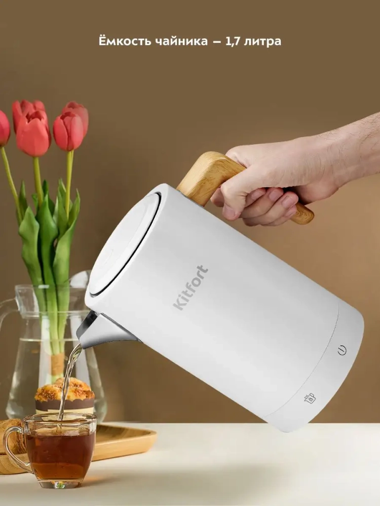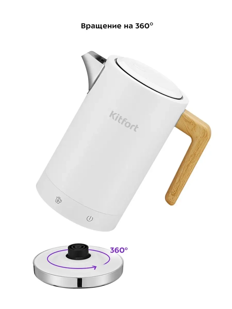 Электрочайник Kitfort КТ-6189 обладает защитой от перегрева и включения без воды, что обеспечивает безопасность использования. Полный объем воды закипает всего за 5 минут, после чего прибор автоматически отключается. Этот умный чайник станет незаменимым прибором на вашей кухне, обеспечивая комфорт и удобство в использовании.